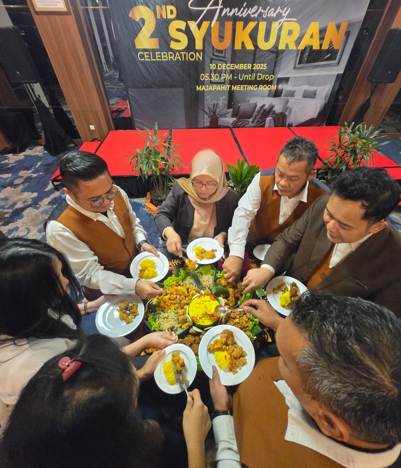 Pada acara puncak syukuran, manajemen menyampaikan rasa syukur dan apresiasi mendalam atas dedikasi tinggi serta kinerja seluruh staf hotel selama dua tahun terakhir.