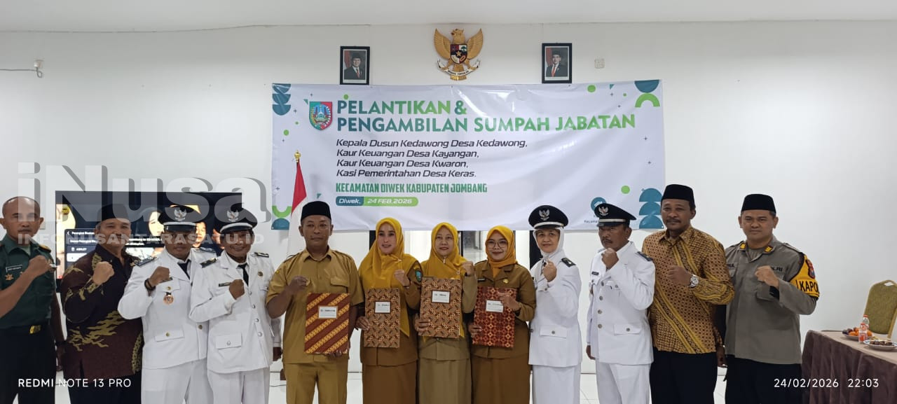 Prosesi pelantikan berlangsung khidmat di Pendopo Kecamatan Diwek, Jombang, pada Selasa (24/2/2026).