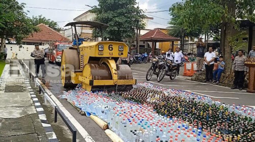 JOMBANG – Polres Jombang melakukan pemusnahan barang bukti minuman keras (miras) di halaman Mapolres Jombang pada Rabu (18/2/2026) pagi, sebagai bentuk komitmen menjaga kesucian bulan Ramadan 1447 H.
