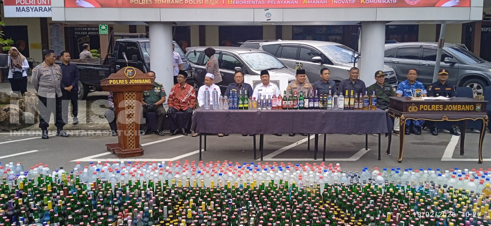 Kapolres Jombang AKBP Ardi Kurniawan mengungkapkan, total miras yang dimusnahkan sebanyak 7.310 botol hasil sitaan Januari–Februari 2026, ditambah 5.000 botol dari operasi akhir tahun 2025.